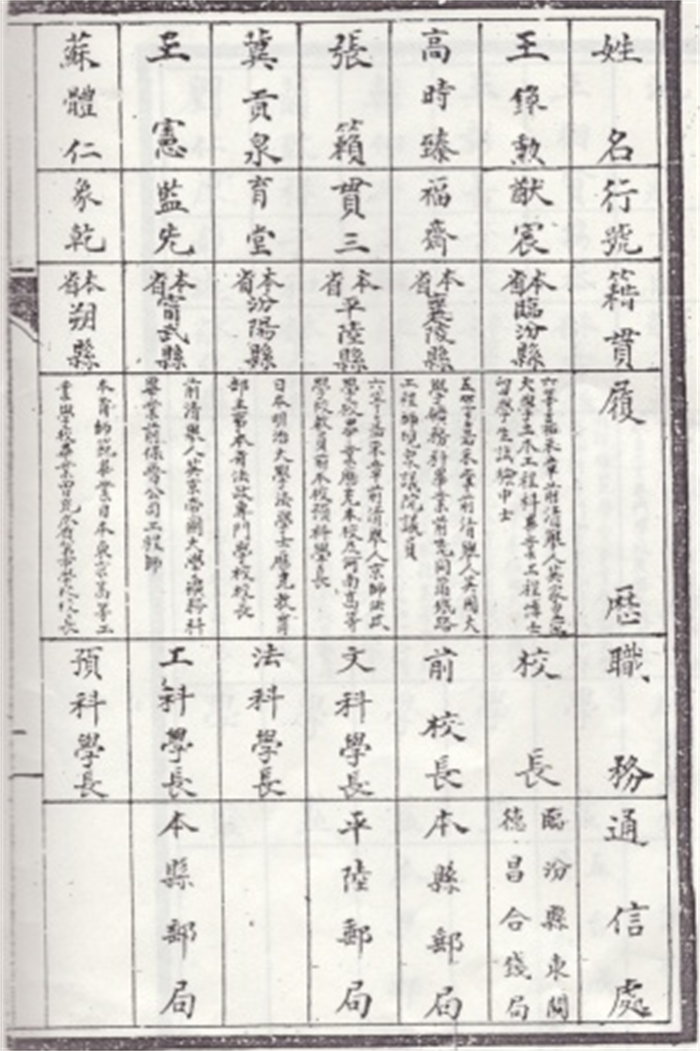 山西大学校教员名册